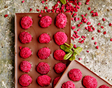 Latvijā ražota 100% dabīga Rabarberu kombucha un Zemeņu šokolādes trifeles (6 gab).